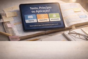 Um material que te ajuda a separar claramente o que o texto diz, o princípio que ele ensina e o que pode ser aplicado hoje — evitando promessas que o texto não fez e aplicações forçadas.