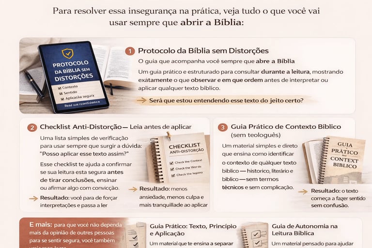 👉 Resultado: você lê a Bíblia com mais paz, confiança e clareza — mesmo sozinha.